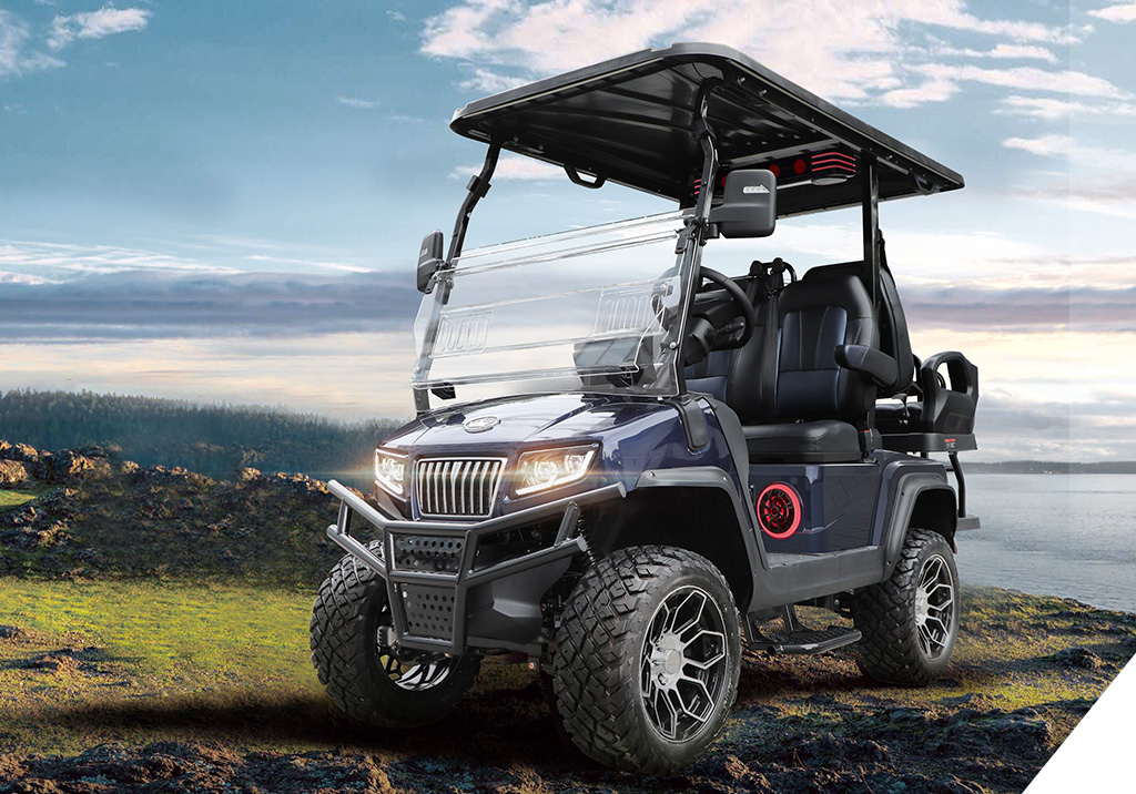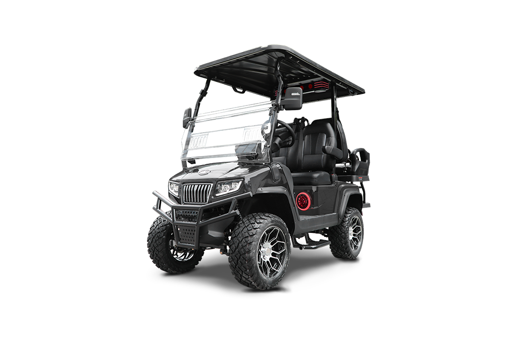 This lifted golf cart redefines outdoor exploration, combining the sophisticated charm of the D5 Ranger 2+2 PLUS with the bold spirit of the D5 Maverick 2+2 PLUS. Equipped with under-seat speakers for an immersive audio experience and seamless Apple CarPlay & Android Auto compatibility available, the EVolution D5 series PLUS keeps you connected and entertained. With silent off-road tires, it whispers across the landscape, ensuring your passage is as serene as it is thrilling.